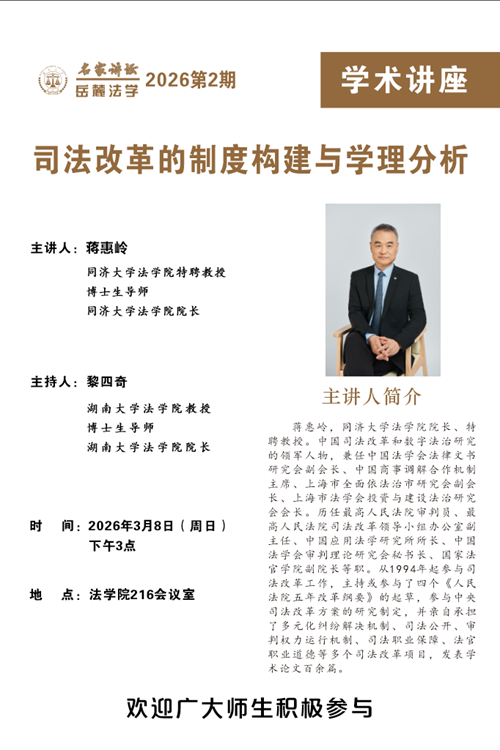 “岳麓法学名家讲坛”2026年第2期在调教动漫