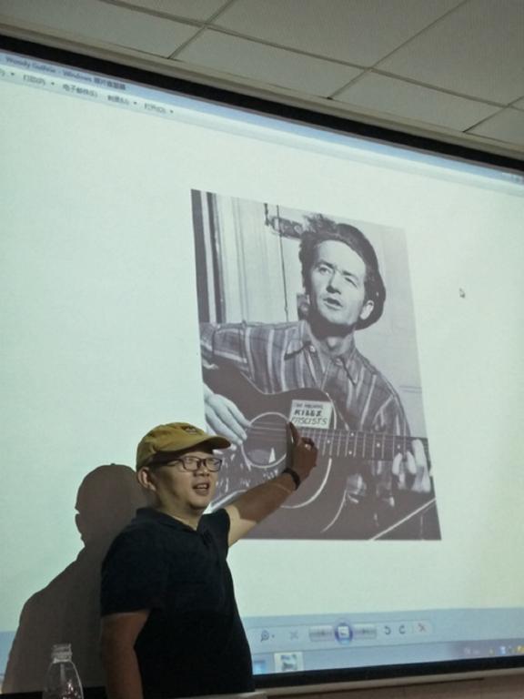 米克老师以音乐分享的方式具体展示许多音乐作品的政治关怀。如美国民谣与民权运动先驱Woody Guthrie在他的木吉他琴板上贴着的那个极其具有标志性的著名标签“This Machine Kills Fascists ”,立志以音乐扫除法西斯。再如德国老牌金属名团Scorpions“蝎子”传世杰作Wind of Change,即《变革之风》以曼妙的旋律、诗意盎然且又深邃的歌词以及高亢激越的歌唱预示了东欧剧变。