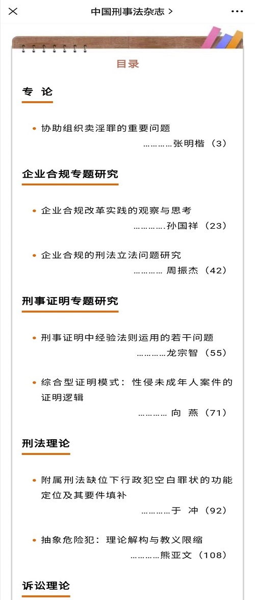 熊亚文副教授在CLSCI、CSSCI来源期刊《中国刑事法杂志》2021年第5期发表论文《抽象危险犯:理论解构与教义限缩》。文章指出,传统危险犯二分法下的抽象危险犯概念及其司法认定逻辑,不仅无法有效指导相关犯罪的解释与适用,反而已经成为司法机关准确合理定罪量刑的理论障碍。事实上,在具体危险犯与抽象危险犯之间,还存在一种需要司法上具体判断有无行为危险性的独立危险犯类型——准抽象危险犯。在我国刑法中,准抽象危险犯既包括原本被划归为具体危险犯的“足以”型犯罪,也包括原本被视为抽象危险犯的虽无明文规定但实质上暗含行为危险性之不法内涵要求的犯罪。根据相关犯罪立法是否明确规定“足以”致生危害之类的构成要件要素,以及其保护的是真正的还是假象的集体法益,可以为我们准确识别准抽象危险犯提供可靠的教义学标准。在此基础上,通过运用准抽象危险犯的司法认定逻辑对其构成要件行为的抽象危险性进行实质解释和判断,有助于实现相关危险行为刑罚处罚的合法性与正当性。