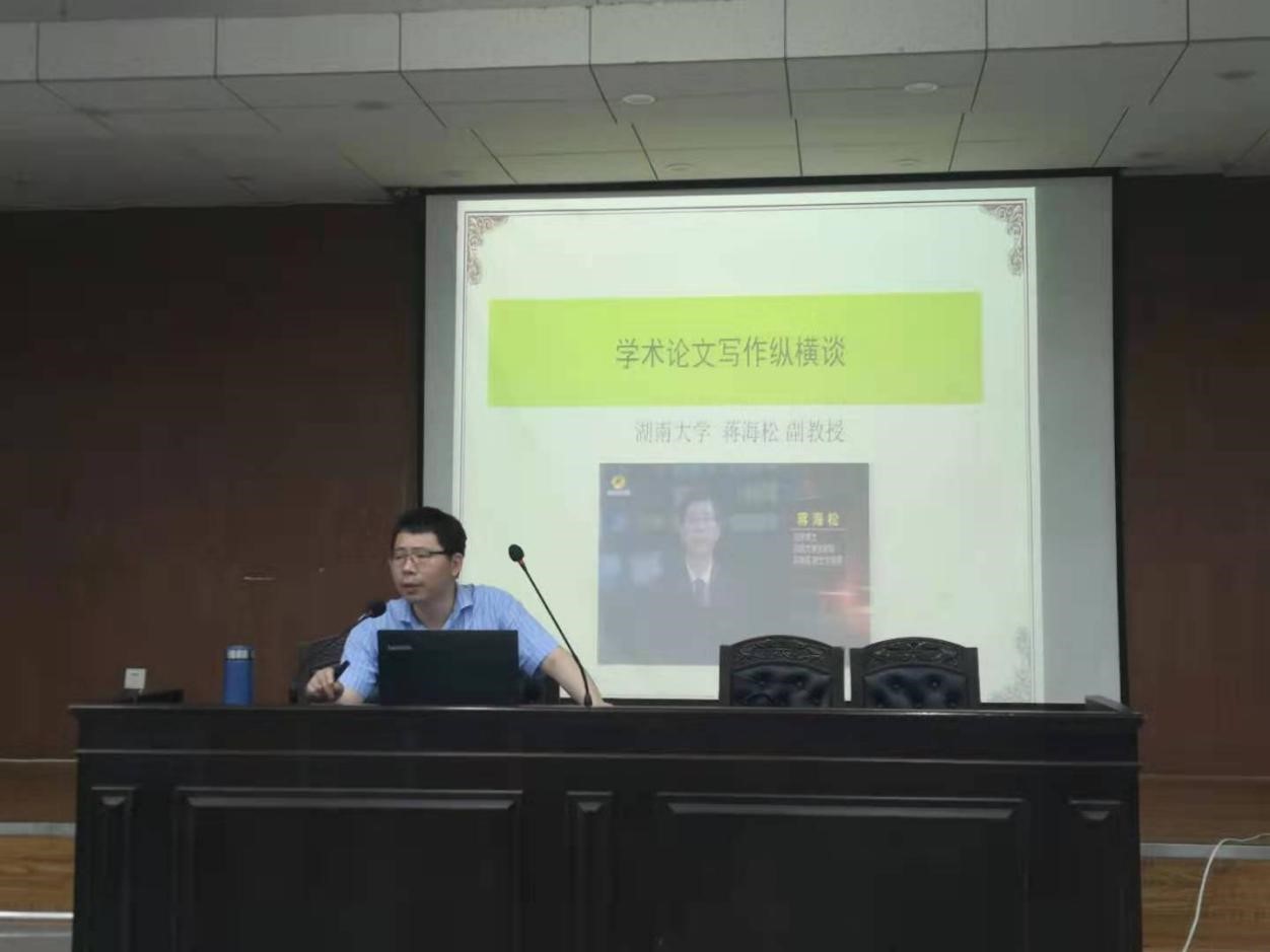 副院长蒋海松副教授主讲“学术论文写作的技法要旨与现实警示”。正在写作学年论文的2018级全体学生参加了此次讲座。