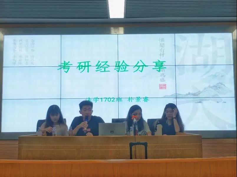 首先朴景睿先向同学们全面的分享了他的复习经历,分别从考研时间线安排、是否选择报班、各科复习心得、考研准备内容、择校、法考考研是否要同时进行等多个角度给出他的经验,他还对同学们事先提出的问题作出回应,为同学们答疑解惑。他在交流的最后给同学们分享了一句激励人心的话:“你不想被的书会有人替你背,你不想刷的题会有人替你刷,法律队伍终究会不断壮大,只不过少了你。”
