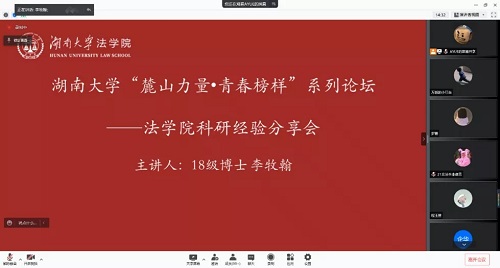 李牧翰学长的经验分享内容包括:科研中遇到的问题、论文写作以及论文发表。学长认为,大多数同学对于如何选题、如何加深选题内容以及如何撰写与投递论文都知之甚少。针对这些问题,学长指出:首先,同学们在日常生活中应该多关注社会热点、多观察身边的事物,发现其中的法律问题,为以后的选题积累素材;其次,多读优秀论文,尤其是要阅读三大刊物的一级标题,以把握研究前沿并学习优秀论文的撰写思路与写作方法;最后,通过练习和模仿提高语言表达能力,多从优秀论文中汲取对自身有利的因素。