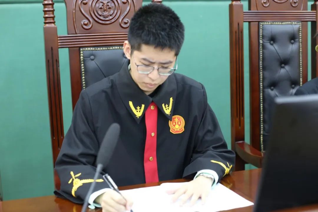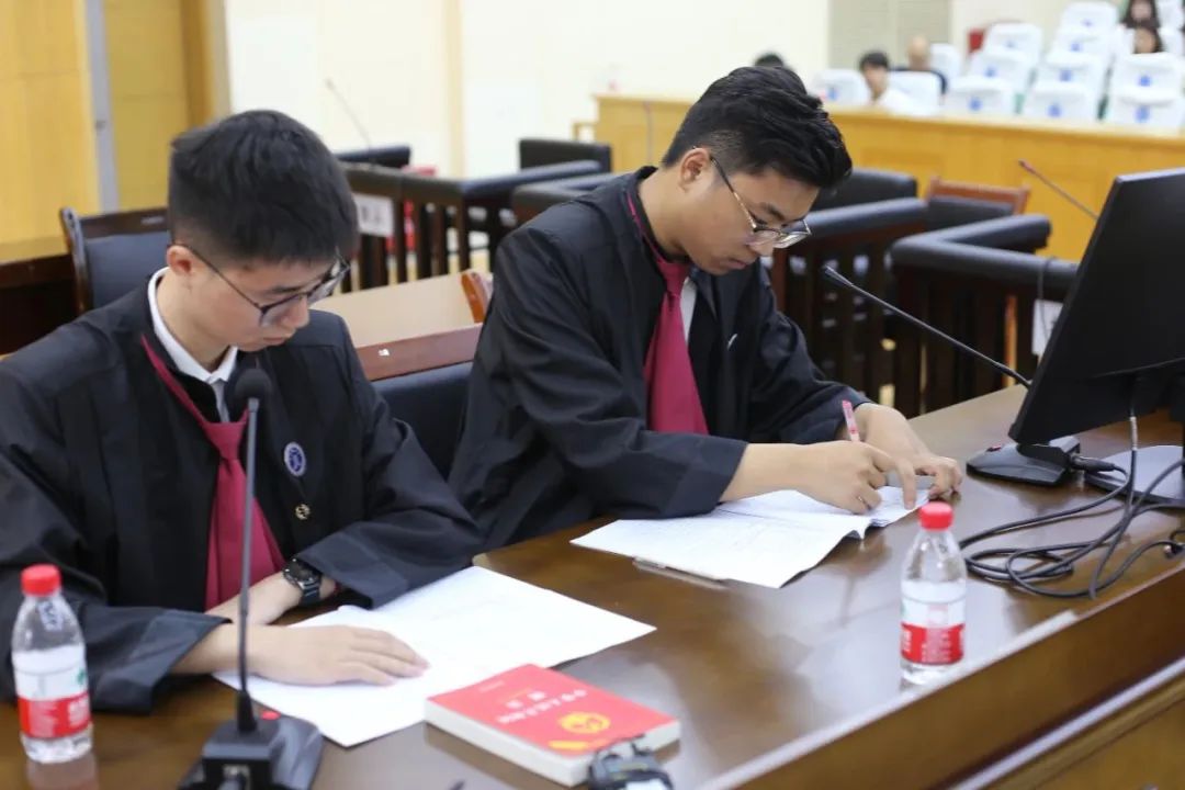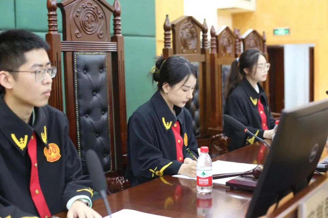 学子在了解基本案情的基础上,独立撰写公诉意见和辩护意见,深入参与案件还原和庭审过程。庭审中,学生扮演审判人员、公诉人、辩护人、被告人等角色,完整模拟了从庭前准备、法庭调查、法庭辩论到当庭宣判等案件审理的全过程。表演同学生动还原庭审经过,在场观摩的学生认真聆听,线上观众热心围观,为大家带来了一场沉浸式的普法公开课。