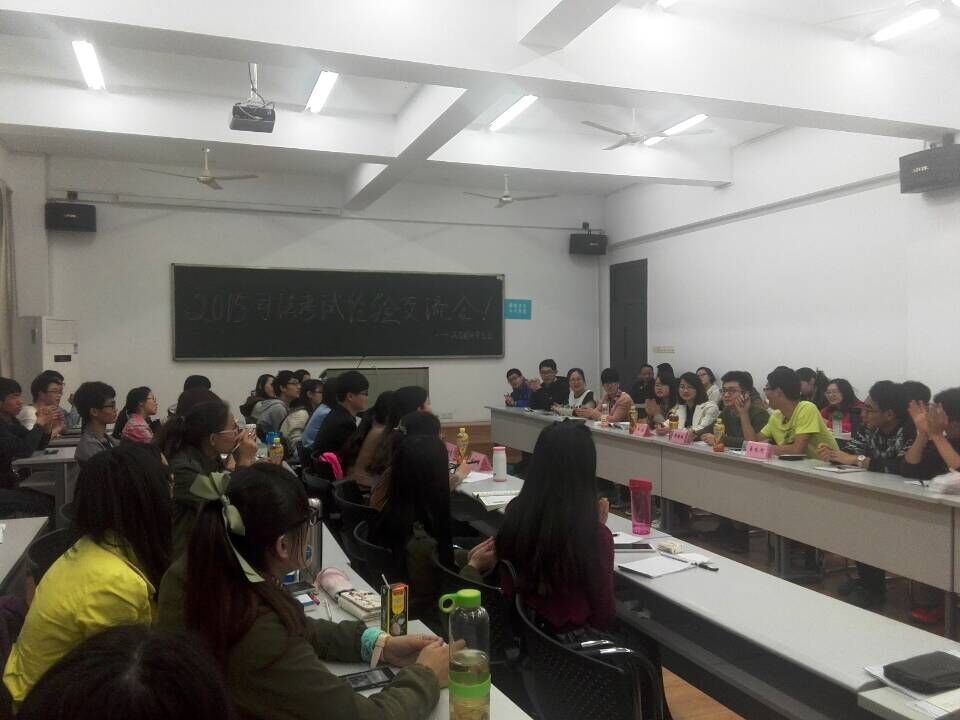 有较多同学参加司法考试的现状,研究生会学术部主办此次交流会,希望能对正在备考的同学们有所帮助。在以后的备考路上,研究生会将继续努力为大家服务。