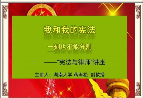 院长助理蒋海松副教授应邀做了题为《我和我的宪法:一刻也不能分割》(律师版)的讲座。