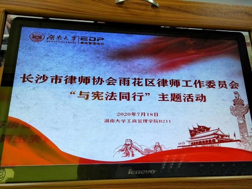 与时代共进,与宪法同行。为进一步深入学习《中华人民共和国宪法修正案》,弘扬宪法精神,维护宪法尊严和权威,加强法律工作者思想政治、执业理念建设,2020年7月18日上午,长沙市律师协会雨花区律师工作委员会“与宪法同行”主题活动在调教动漫