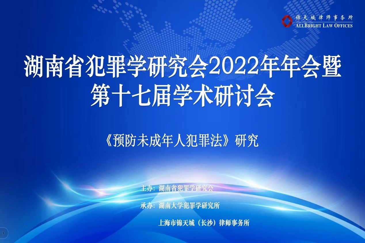 犯罪学研究所、上海市锦天城(长沙)律师事务所承办。