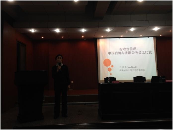 公婷教授首先简要介绍了中国内地和香港公务员制度的异同,相同之处在于两地公务员制度都是科层制结构的,公务员受到行为准则的约束,固定工资和相对的终身制,以公共利益为服务宗旨;不同之处主要有:内地不搞“政治中立”,坚持党管干部,不搞“两官分途”;香港公务员制度承袭自英国公务员制度,政务官事务官分离,问责局以下的公务员须遵守“政治中立”的原则。