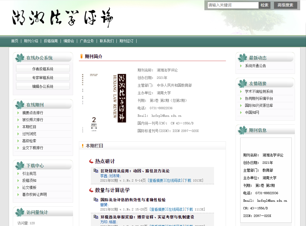 主办的法学学术期刊,于 2021 年创刊。本刊为中文版季刊,国际标准连续出版物号为ISSN 2097-020X,国内统一连续出版物号为 CN 43-1556/D。