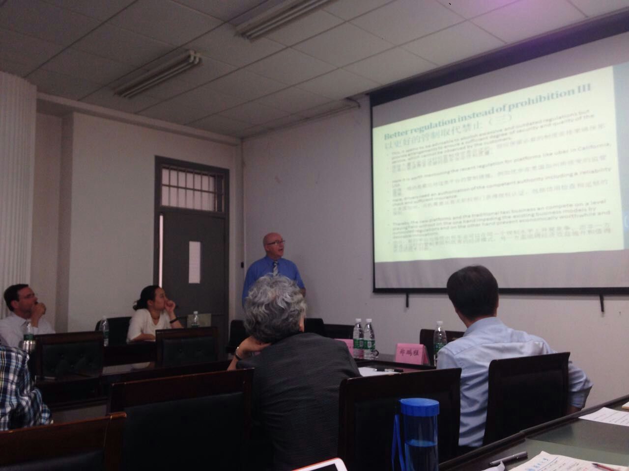 在讲座的上部分由乌尔里希先生就其主题进行演说,在他的讲座中,将出租车市场上的问题引入经济学的角度进行分析,引荐德国规则与其现有竞争模式,认为处理出租车市场问题管制比禁止更有实效性;而在讲座的后半部分,丹尼尔先生也就其主题分布解说。首先,以特定成本结构来解释市场集中程度。其次,介绍了相关管制手段与因素来进一步阐释竞争法介入后的数字市场的变化。