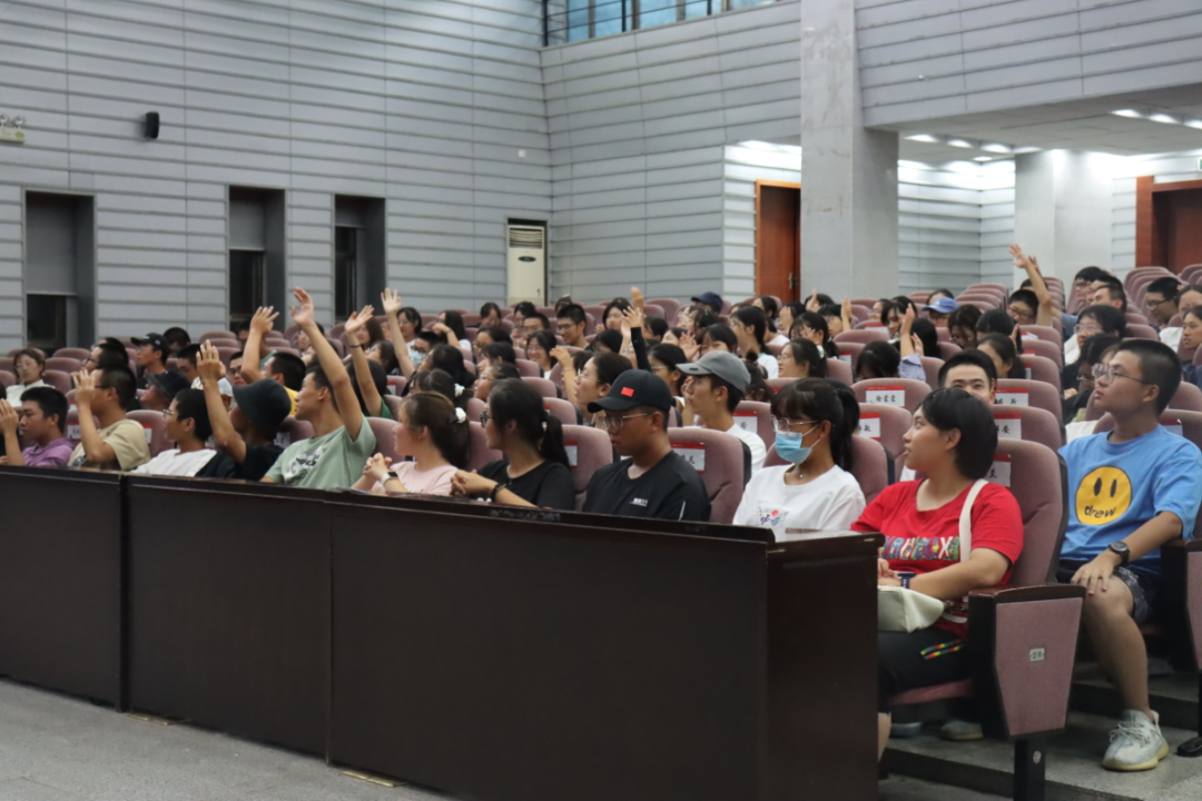 报告厅。分会场为研究生新生会场,设立在北校区二教205教室。主讲人为心理健康中心的杨航老师。杨老师讲到大学新生的烦恼,杨老师将这些烦恼总结为初入大学的三“mang”困境——忙碌、迷茫、茫然。接下来,杨老师又从研究生的角度出发,阐述了研究生的压力源和情绪困扰因素,并说明这些情绪都是极为正常的,我们能做的就是要懂得感受冲突,多参与少逃避,多规划少放纵,活在当下,心中朝向未来。