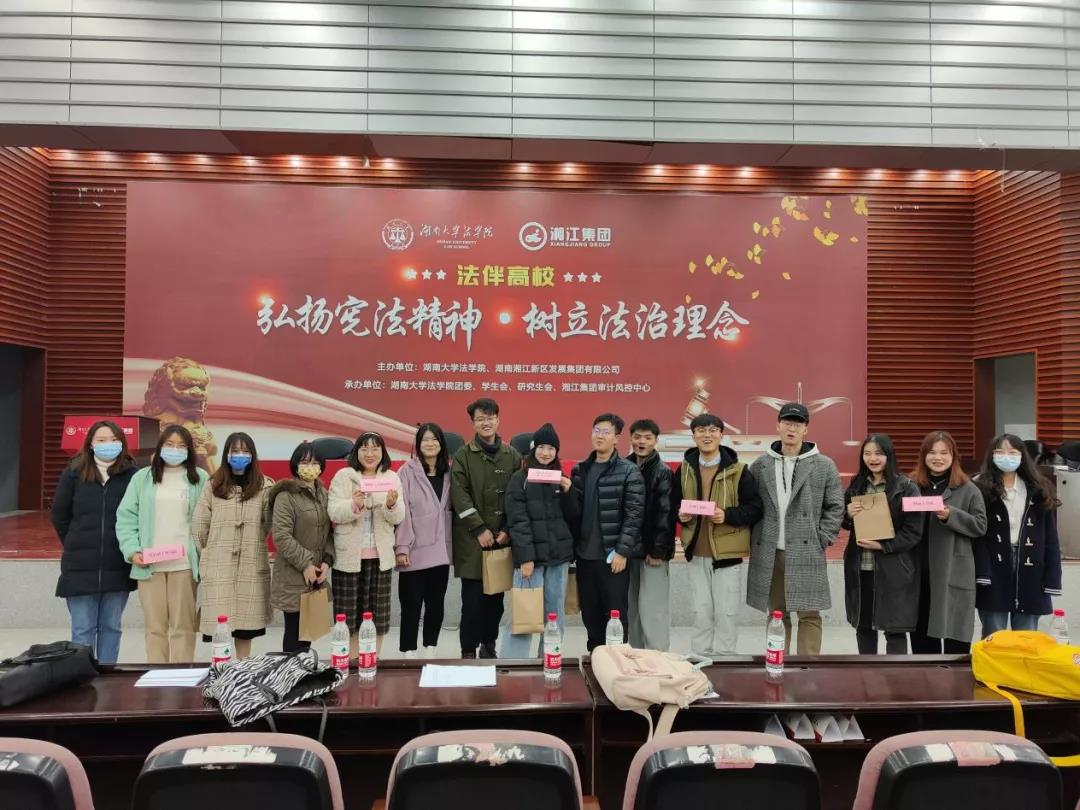 团委、学生会、研究生会联合湘江集团在国家宪法日期间开展了“法伴高校—弘扬宪法精神,树立法治理念”主题教育活动,活动形式主要为宪法晨读、宪法知识竞赛等。