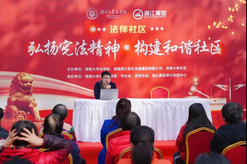 社区特此开展“弘扬宪法精神、构建和谐社区”为主题的普法宣传进社区活动。湖大社区党总支书记夏运枚、湘江集团法务、调教动漫