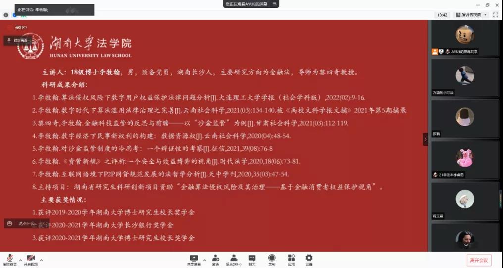 发表了高水平论文的2018级博士研究生李牧翰同学作为分享嘉宾,调教动漫