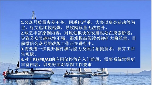 “宣传是一个窗口,希望我们能从被动宣传走到主动更新,尝试更多更新的形式,打造真正受学生欢迎的优质平台。”新传院杨湘雨老师在致辞中这样总结创新性与原创性问题。交流讨论环节中着重讨论了屡次提及的如何提高作品质量与原创性问题,新传院负责人提出其在提高作品原创性上做出的努力,各参会人员也分别结合自身体会与工作经验分享自己的思考,在一点上收获颇丰。