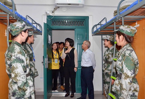 院领导先与迎新团队成员进行交流。仔细询问迎新的基本情况,听迎新团队成员分享迎新工作的体验与收获。在学生宿舍,学院领导与同学们进行了亲切交谈,询问仔细询问新生来自哪里、对大学生活是否适应、食堂饭菜是否合乎口味、对军训感受如何等。屈院长叮嘱大家,注意劳逸结合,即使军训结束,在学习之余也要加强锻炼身体,拥有一个健康的体魄对于顺利完成学业至关重要。他仔细查看新生书架上摆放的书籍,并与学生交流读书心得,勉励同学们要努力学习,踏实读书。