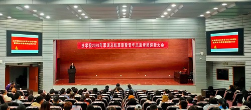2020级新生军训教官、2020级迎新团队成员和2020级全体同学参加大会。