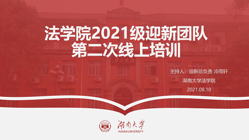 2021年迎新团队举行线上党建培训会。会议由党务与学生工作办公室组织干事成凤仪老师主讲,2021级新生辅导员张丹老师参会指导,2021级迎新团队成员参加会议。