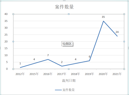 通过分析我们注意到,2020年前关于高空抛物的刑事案件数量并不多,但在2020年案件数量达到了峰值。从83个样本案例来看,排名前三的裁判日期及占比分别为:2020年(35件,占比42.17%)、2021年(24件,占比28.92%)、2016年(7件,占比8.43%)。
