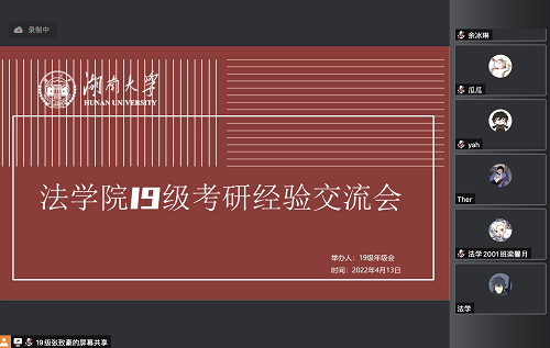 法学硕士已录取)、张文豪(南京师范大学法学硕士已录取)和肖康皓(吉林大学法律硕士已录取)等六位成功“上岸”的学长学姐分享经验,来自2019级和2020级的130余位同学线上参加交流会。调教动漫