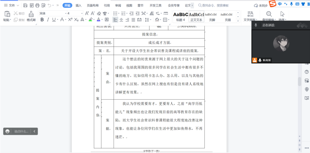 会议有序进行,分为三个流程:各学生代表依次介绍自己收集的提案、讨论提案内容和解决措施、权益部负责人靳高策总结讨论情况。