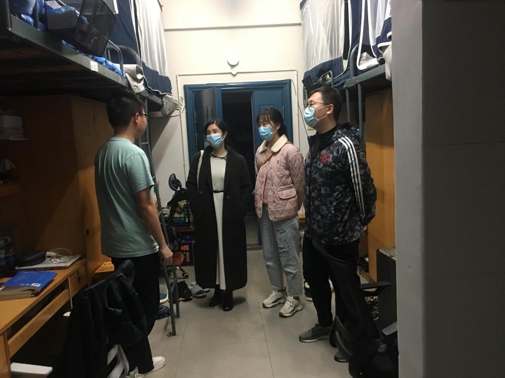 各年级辅导员和班主任走进学生宿舍,与同学们面对面亲切交流,了解学生学习情况,关怀学生日常生活,关心学生身体健康,并全面检查寝室卫生和用电安全。在检查过程中,老师们也叮嘱大家要加强防范意识,注意用电安全、财产安全;提醒大家做好每日清洁、定期消毒,预防各类传染性疾病的发生。