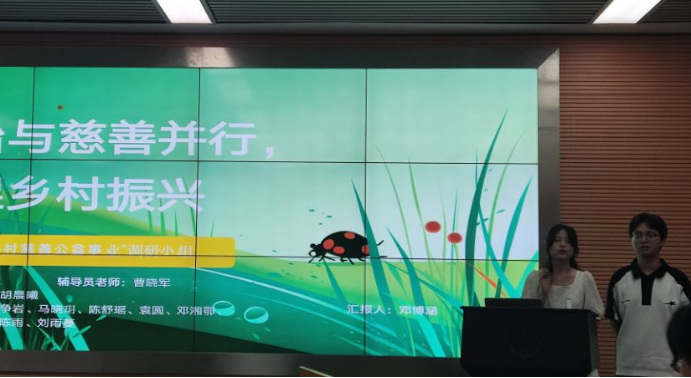 、工商管理学院、金融与统计学院等多个学院,且包含本硕博不同学历阶段的优秀学生。选题上,既包括显现专业特色的法治调研,同时彰显普通话推广、乡村振兴等社会命题。在答辩过程中,各组代表充分展示了其对于三下乡活动的理解、选题的原因、调研地的选择、计划实施的方案、暑期调研规划等内容。代表们向老师介绍了团队前期研究成果,并纷纷结合自身专业特色与各自地域优势,制定了实地调研规划。