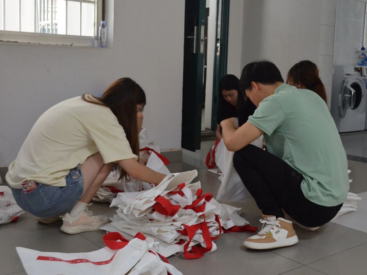 不辞辛劳地分发物资,筹备礼品