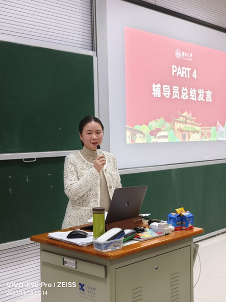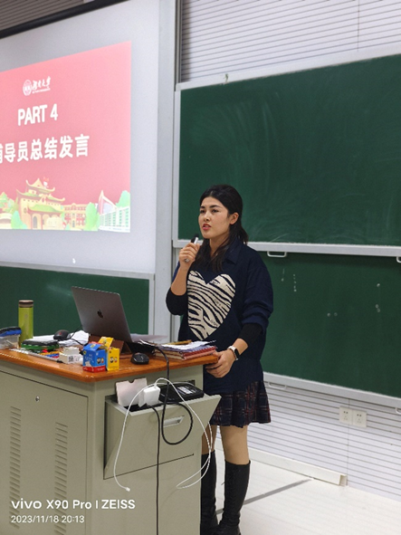 在辅导员总结发言环节,物电院辅导员李远庆老师鼓励大家在正确的时间做正确的事情,电气院热孜宛古丽老师希望同学们珍惜与同学们之间的友谊,互相学习互相进步,调教动漫