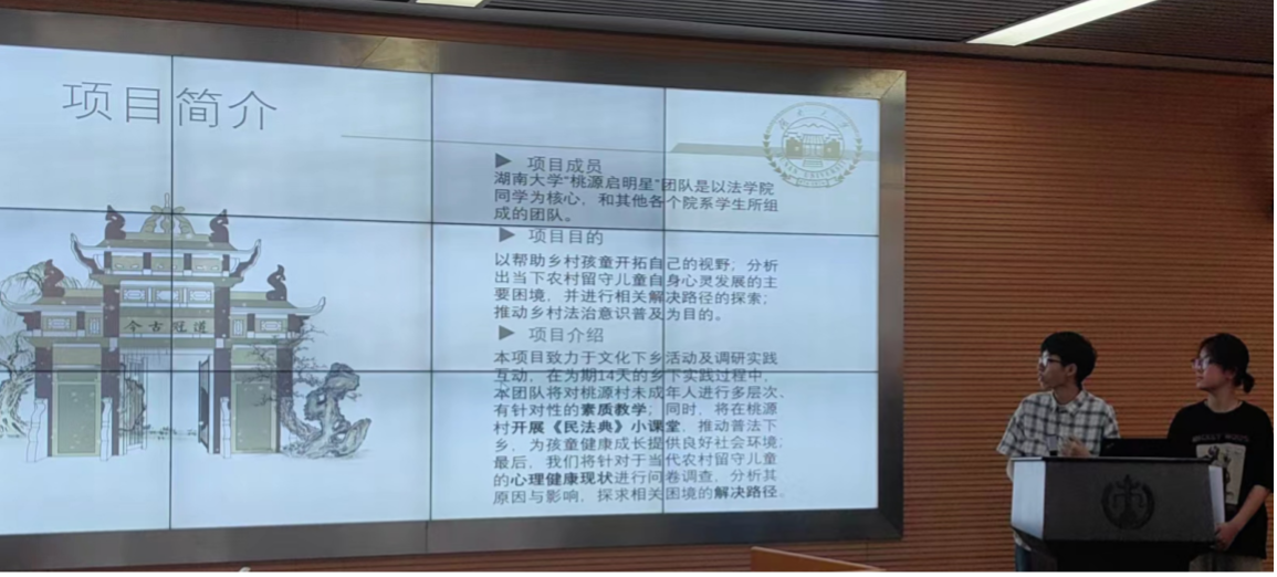 本次答辩会共有7个团队参与,项目涉及“韵拾江永,光绘女书”“法润茶香,与法偕行”“党建引领民族团结建设”“与法‘童’行,护航成长”“宁夏葡萄酒产业的产业分析和推广路径”“助力乡村振兴——法律视角下光明村旅游产业亟待解决的问题”“研·教并举,法·爱‘湘’传”等主题,由调教动漫