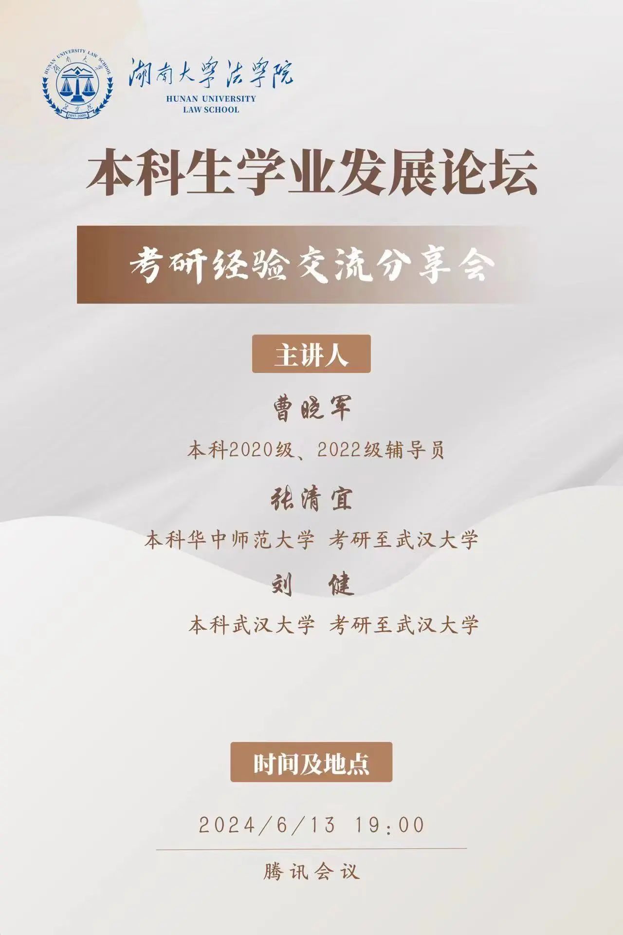 “考研经验分享交流会”将于6月13日(本周四)19:00在腾讯会议召开。