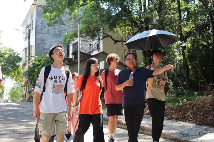 7月16日,在福溪村,团队成员们紧跟陈道增村支书的步伐,穿梭于古朴的巷陌之间,聆听他娓娓道来村庄近年来的发展与变革,以及当地资源的丰富与独特。走访之旅告一段落,他们带着满满的收获,展开了问卷调查,细心搜集每一份民意,为福溪村的未来绘就更加清晰的蓝图。