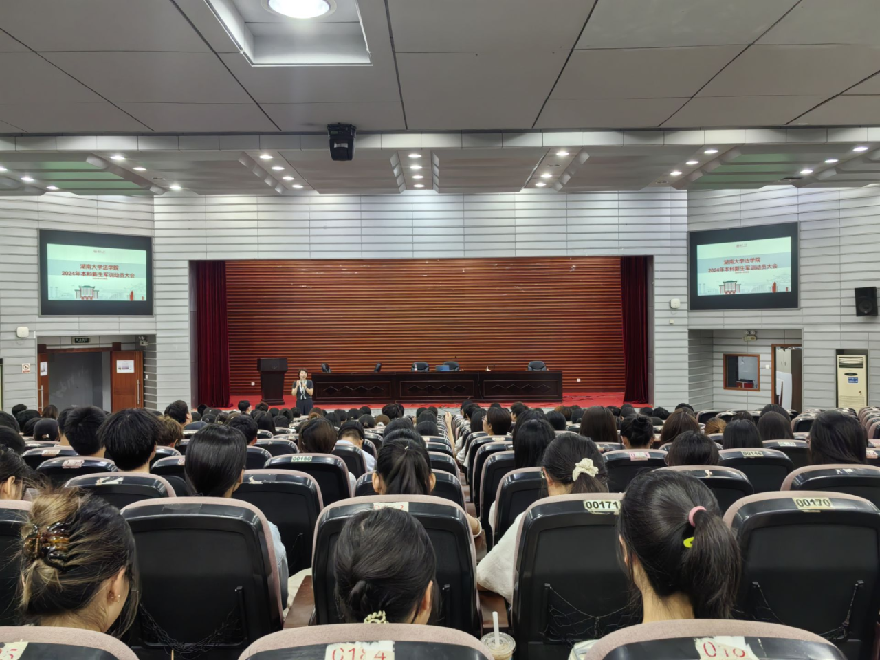 于三楼报告厅召开2024级本科新生军训动员大会,学院党委副书记、纪委书记罗英老师、2024级本科生辅导员曹晓军老师出席本次大会,2024级全体本科新生参加。