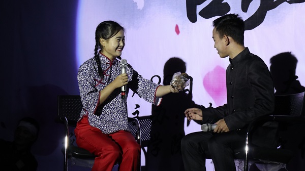 接下来,晚会进入了趣味横生的互动抽奖环节,观众们摇动手机,同主持人互动,抽取零食大礼包,现场气氛十分热烈。游戏过后,四位研究生带来了火热的舞蹈《Watch Boom》,引起现场阵阵尖叫。人生一世间,忽若暮春草,17级法学一班的同学们带来的歌曲串烧《给所有知道我名字的人》穿越时光,观众们伴随着往日的歌声与摇动的荧光,怀想着过去的“小确幸”。其后,17级法学二班带来的舞台剧《非诚勿扰小二班》别出心裁,将民族舞蹈、吉他演奏、相声小品巧妙结合,将一场意外不断的“相亲大会”呈献给了观众。爆笑过后,便是学院晚会的传统节目《新疆舞串烧》。来自全校各个学院的新疆学生受邀登上调教动漫