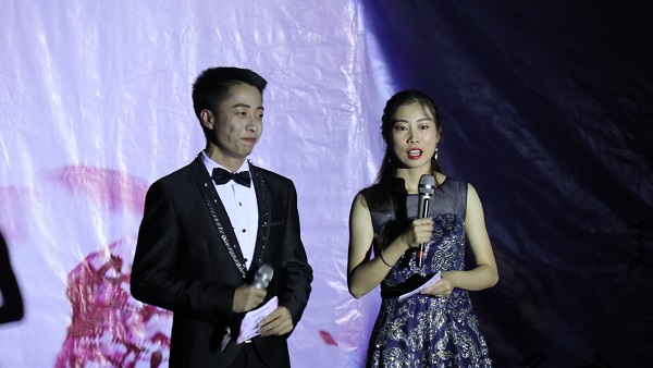 学生会文体部全体干事率先登台,为观众们带来了朝气蓬勃的开场舞蹈《Bang Bang Bang》,为整场晚会拉开绚丽序幕。精彩的舞蹈表演过后,李永罗、钱娅、韩明慧、谷雨四位主持人身着盛装,走上舞台,介绍各位到场的嘉宾并宣布晚会正式开始。