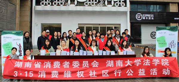 联合主办的“普法惠居民,志愿社区行”——3·15国际消费者权益日宣传活动在长沙市天心区向东南社区举行。