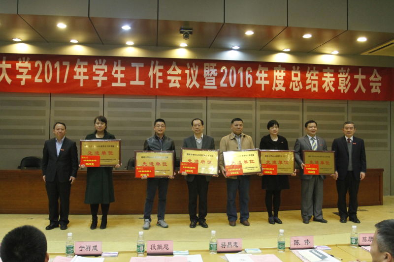 2月28日上午,调教动漫 2017年学生工作会议暨2016年总结表彰会议在逸夫楼报告厅举行,校领导蒋昌忠、段献忠、陈伟出席会议并为获奖集体颁奖。调教动漫 以全校总分第二名的成绩荣获2016年学生工作考核先进单位。