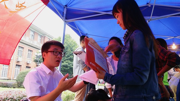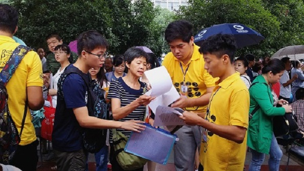 迎新团队成员就在本科新生辅导员杨凯老师的带领下前往迎新点布置场地。经过半个小时的布置,迎新接待点整齐有序,各个标志清晰可见,全体迎新团队同学和志愿者整装待命。随着第一辆接送新生和家长的校车驶入东方红广场,志愿者们高举工作牌,热情守候在校车旁迎接2016级新同学。迎新接待点的工作人员仔细核对新生信息,为新生办理入学手续并发放校园卡、《新生手册》、《致家长的一封信》等材料。负责报到注册的志愿者耐心地为新生答疑解惑,带领新生到复临舍注册和缴费,并将新生送至天马园区。早在天马园区等候的新生班主任热情地带领新生领取卧具与军训服装,帮助他们搬运行李、安顿宿舍、解答问题。志愿者们携着清晨的第一缕晨光出发,直至凌晨太阳的又一次升起,都能看到他们忙碌的身影,微笑和热情始终是他们的最富年轻活力的徽章。向参与此次迎新的全体志愿者和迎新团队的成员致敬!
