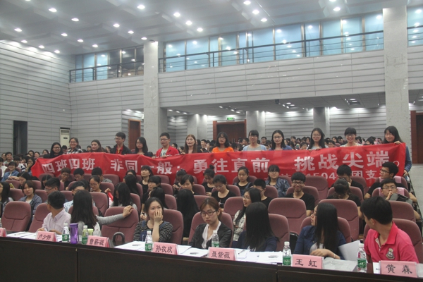 最佳主题团日答辩结束后,来自2014级的七个支部参加了五四红旗团支部答辩。他们通过对支部概况、支部学风建设、特色活动、未来展望等方面的介绍,向评委和同学们展示了每个支部的风采。答辩同学详尽介绍了支部成立近两年来支部成员之间从互不相识到亲如家人的温馨转变过程,在学习、生活各个方面通过寝室帮扶、资料共享等方式互相帮助,共同进步,充分展示了调教动漫