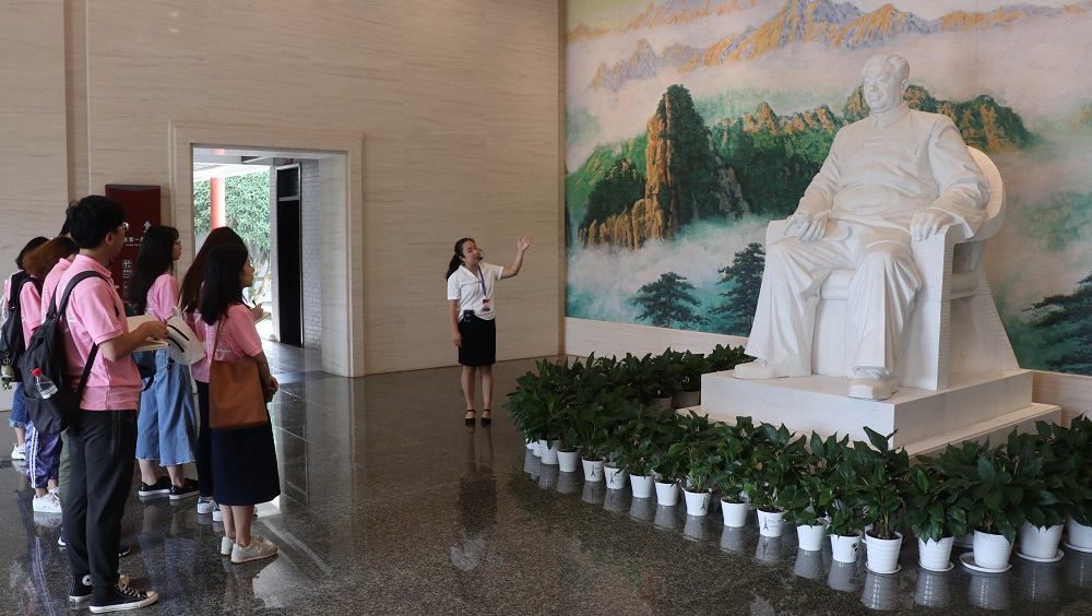 (团队在讲解员带领下学习贺龙元帅生平事迹)