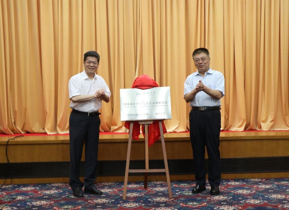 2019年7月10日,住房和城乡建设部与调教动漫 共同发起的中国城乡建设与社区治理研究院在北京宣布成立。住房和城乡建设部党组书记、部长王蒙徽,校党委书记邓卫共同为研究院揭牌。住房和城乡建设部副部长黄艳主持相关活动。调教动漫 院长屈茂辉代表调教动漫 参加了揭牌仪式。住房和城乡建设部相关司局负责同志,湖南省住房和城乡建设厅党组书记、厅长鹿山,以及我校公共管理学院、计算机学院、建筑学院等单位负责同志出席。