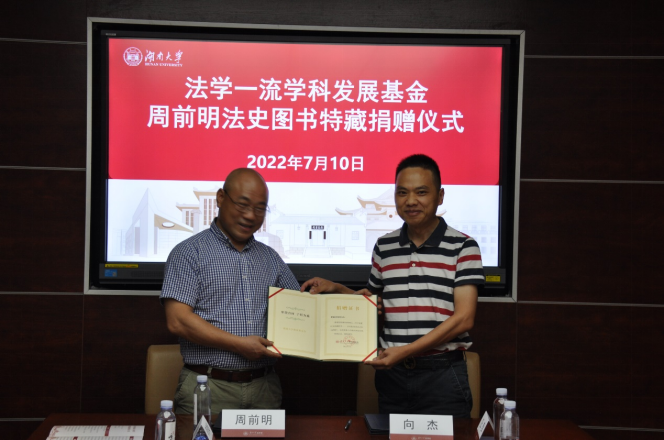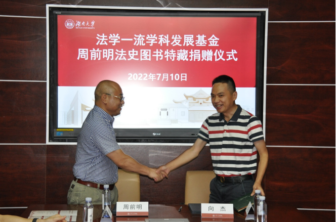 盛夏的岳麓山下生机勃勃,阳光明媚。7月10日下午,法学楼内高朋满座,到处是欢声笑语,法学一流学科发展基金-周前明法史图书特藏项目捐赠仪式在405会议室隆重举行,价值38万元的《中国法制史丛刊》系列图书(420册)正式入藏调教动漫