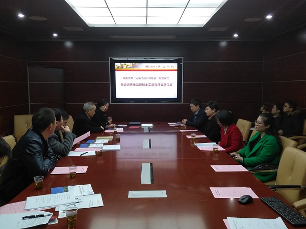 院长屈茂辉教授,肖海军教授,蒋海松副教授,肖洪泳副教授,王文胜副教授、雷秋玲、刘岳峰等多位老师以及湖南省元端律师事务所主任袁啸先生,执行主任董爽律师,吴卫萍律师、张瑾律师等参加了仪式。