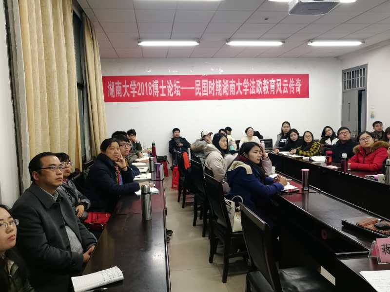 院史的精深研究,为我们百年法学的学脉勾勒做了比我们学院老师更专业的贡献。此次论坛不仅听到了许多动听的故事,而且学习了学术分析方法;湖南法学家的爱国精神和心怀天下,敢为天下先的情怀需要得到后人的传承与发扬;民国时期的动荡环境能使社会迸发活力,多元文化的碰撞让法学文化欣欣向荣,这种自由空间才能产生更多的法学大家。