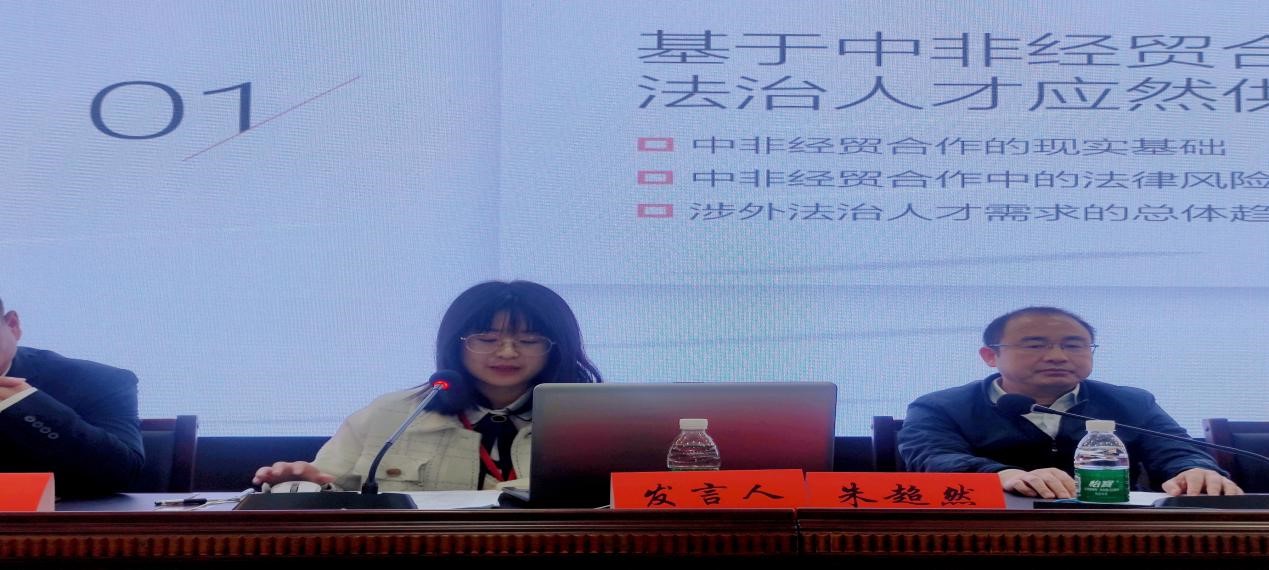 本次学术会议中,调教动漫 四名硕士生论文获奖,2位硕士生作者在会议专题单元做学术发言。奖项不单独局限于学生,专家学者、法官、检察官、律师等各行业人士论文一并参评奖项,在校学生能通过激烈竞争获得奖项,是对我校硕士培养质量的肯定。其中李小明教授指导的朱超然同学撰写了《新时代涉外法治人才培养模式探究——基于中非经贸合作人才需求分析》,荣获本次会议二等奖,并在“湘非经贸合作的法治保障与人才培养”主题研讨会做学术发言。论文和发言围绕湖南省中非涉外法治人才培育问题及相关对策提出进行阐述,获得了在场专家学者的一致认可。