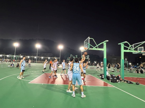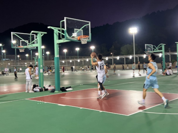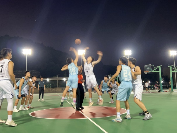 经过短暂的休息,第三节开始,我方队员集体爆发,外线球员全场领防、积极逼抢。17号邓卓横抓住机会,外线出手,命中3分,现场瞬间爆发一阵热烈的掌声和欢呼声。7号包祺元空切篮下,以一敌五,上篮得分,再次将现场气氛推向高潮。