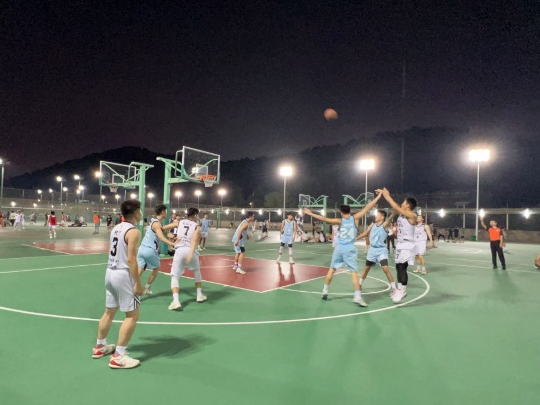 篮球队与经济与贸易学院篮球队在南校区荫马塘篮球场展开激烈角逐,调教动漫