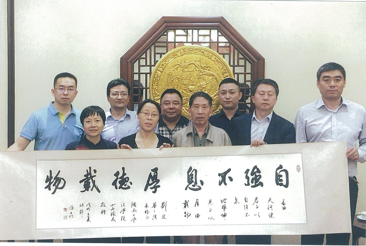 校友感谢恩师始终如一的关心爱护,并敬赠刘老师“自强不息,厚德载物”手墨,表达山西校友尊师重道之心。
