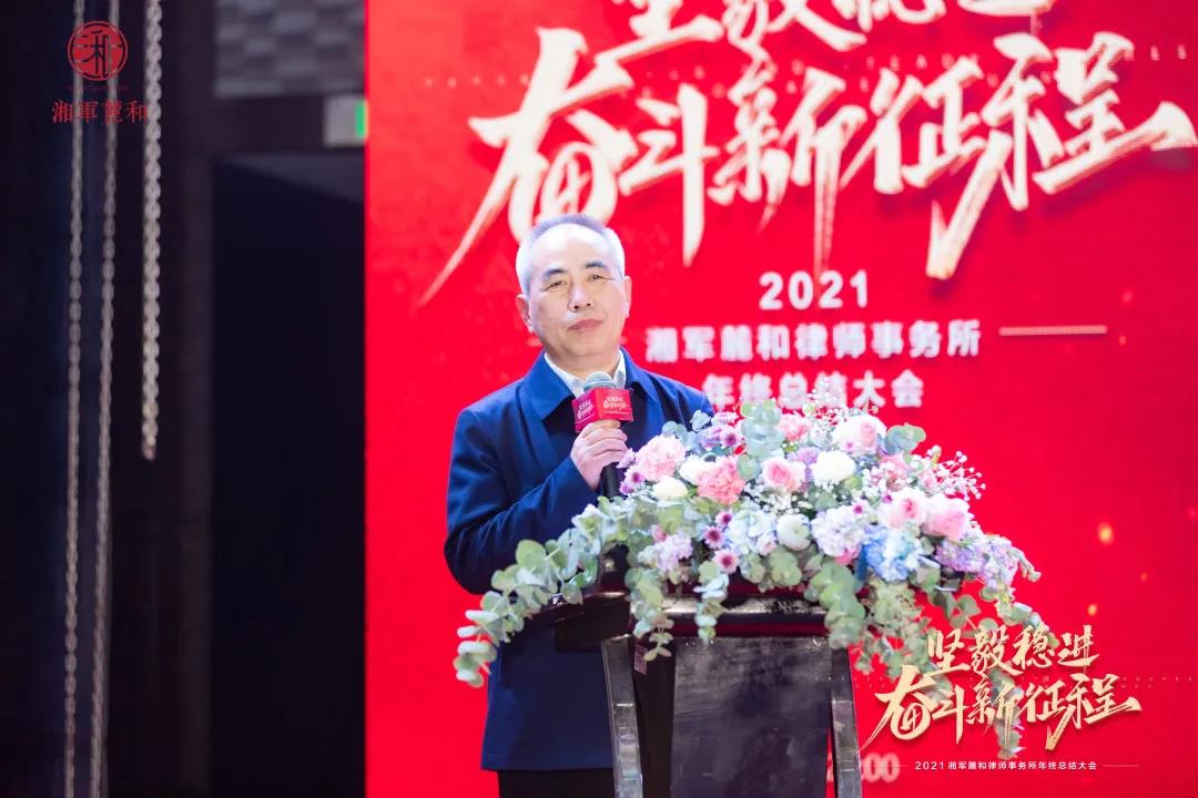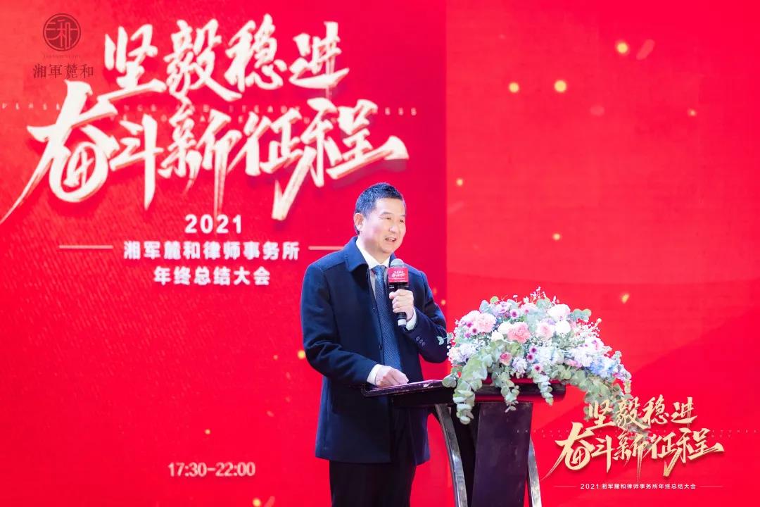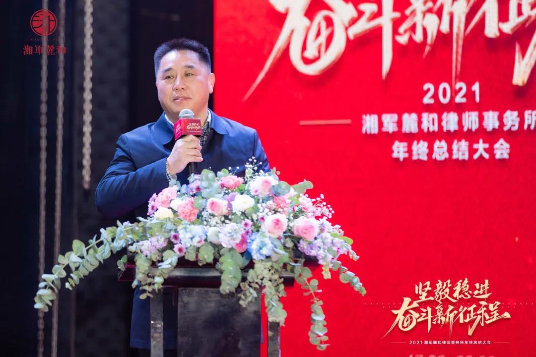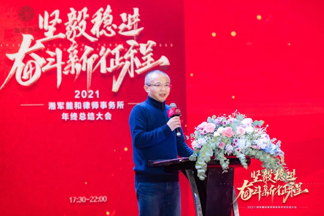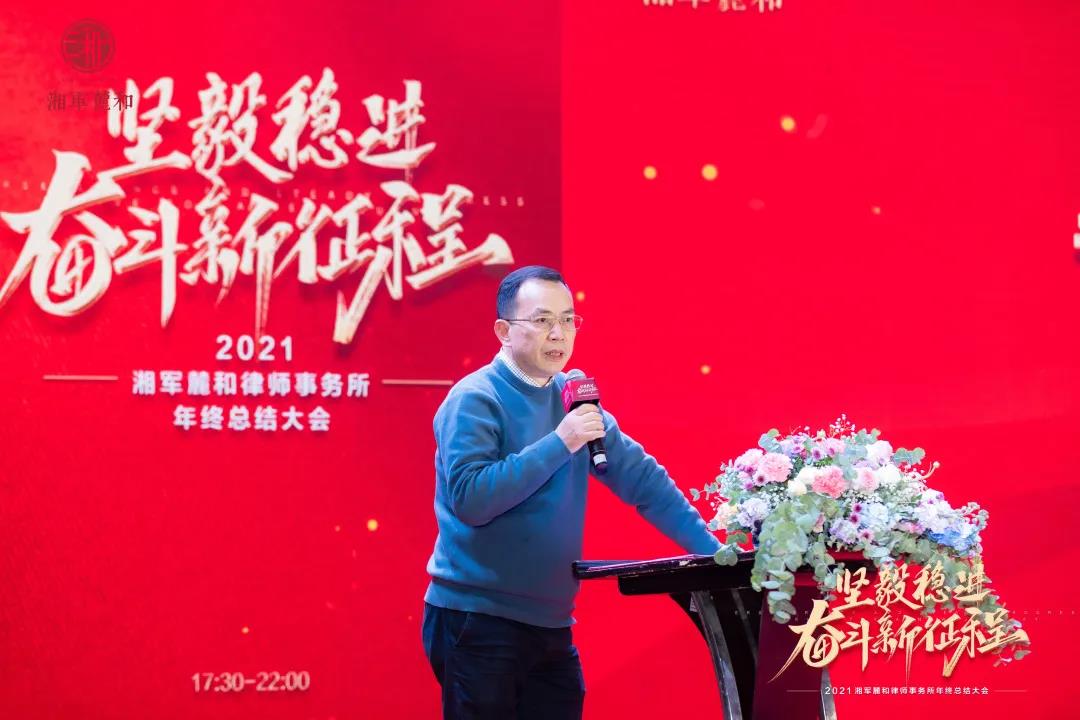 随后分别从律所管理、专业服务、品牌营销、党建四大方面详细总结了2021年湘军麓和所的工作情况和荣誉奖彰,并对2022年度工作做了规划,强调在未来的一年里,湘军麓和所要重点抓好七项工作,坚定不移地推进专业化、规模化、规范化、人才队伍、品牌、党建和律所文化建设,进一步加强发展战略研究和业务创新。