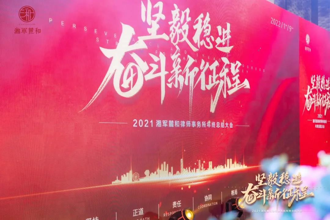 2022年1月9日,湘军麓和律师事务所发展沙龙暨2021年终总结大会在凯宾斯基大酒店举行,湘军麓和所全体员工欢聚一堂,共度联欢。